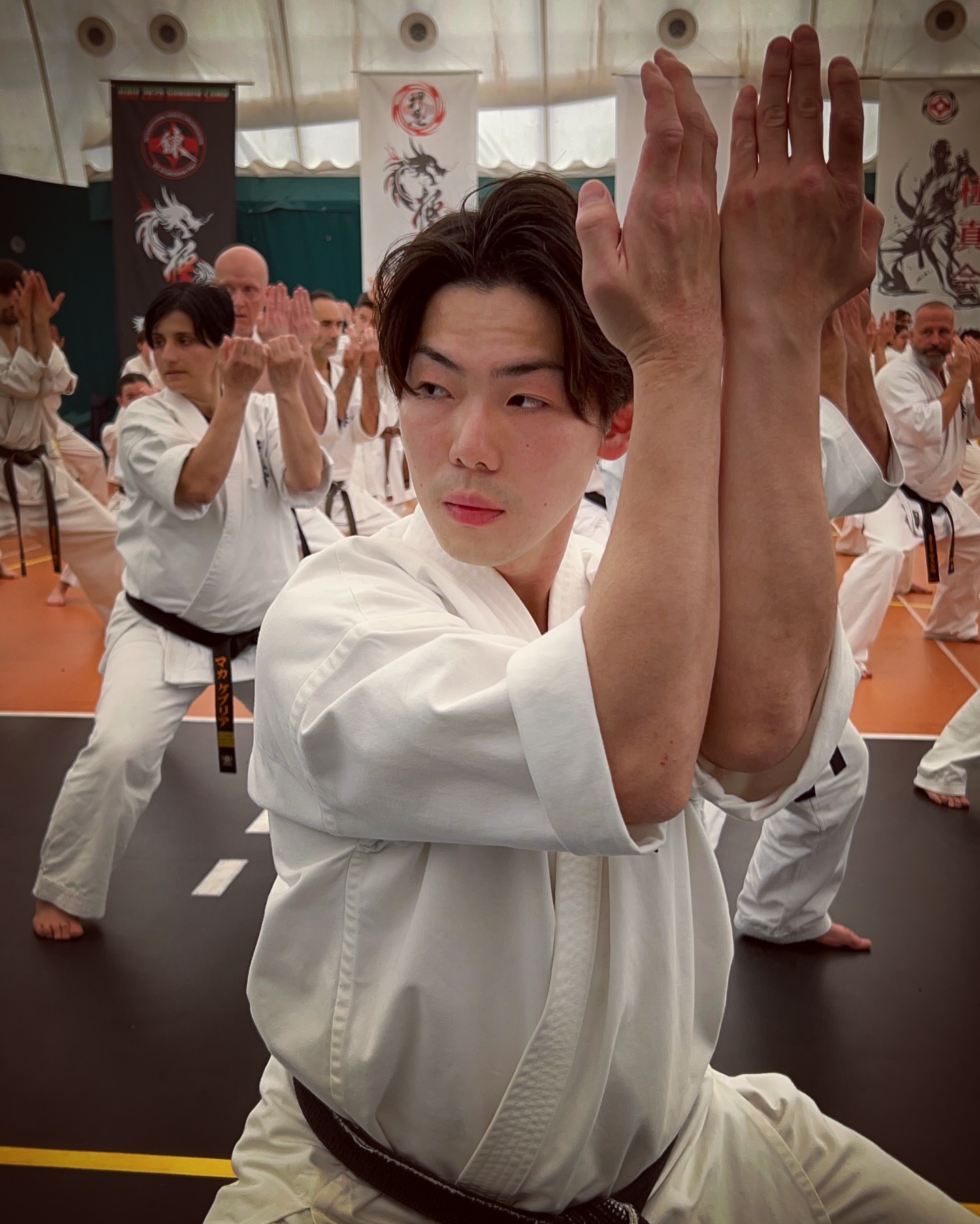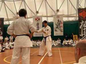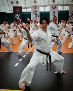 After a long but good trip we arrived at the hotel. A quick change in dogi and on to the first training session. This weekend the seminar will be given by students of our Hanshi Oishi and Kyokushin icons: Senpai Naoto Kusakabe and Senpai Kai Ogasawara, from Japan. Both reigning champions in Kata and Kumite.